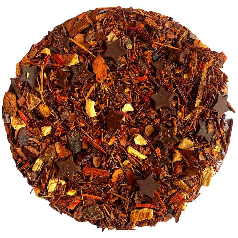 Rooibos, cacaodoppen, cacaoboon, sinaasappelschil, kaneelschors, chocoladesterren (suiker, cacaoboter, ammonium fosfatide), catuaba, framboosvlokken ( maïszetmeel, suiker, framboospuree, frambozensap), sandelhout, rode biet en aroma