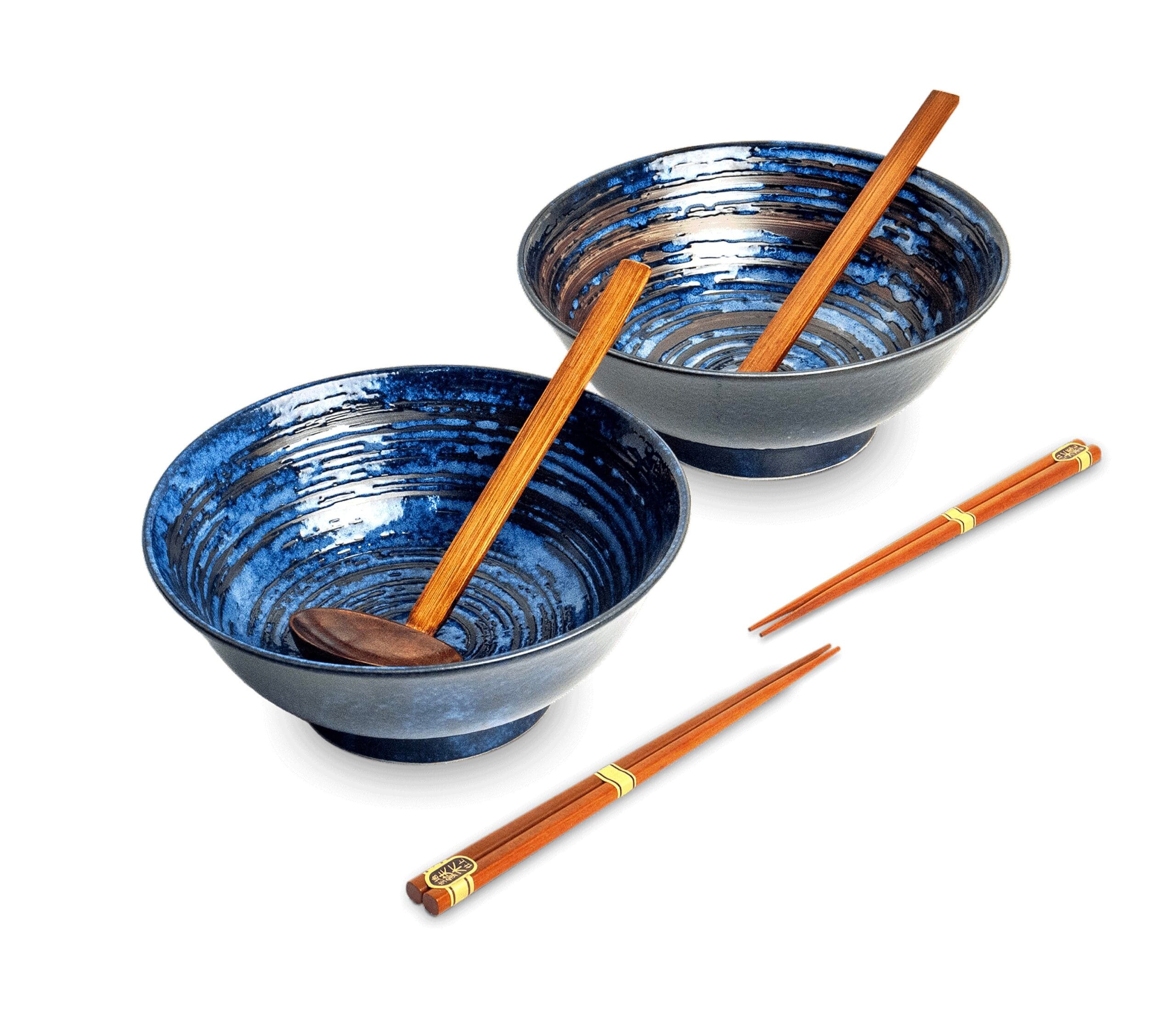 Wil jij je Ramen in stijl eten? Dat kan met deze prachtige Ramen kommenset voor twee personen! De set is van hoge kwaliteit en wordt geleverd in een mooie geschenkverpakking. De set bevat 2 grote Ramen kommen, 2 Ramenlepels en 2 setjes eetstokjes. De kommen zijn geschikt voor in de magnetron en zijn vaatwasser bestendig.